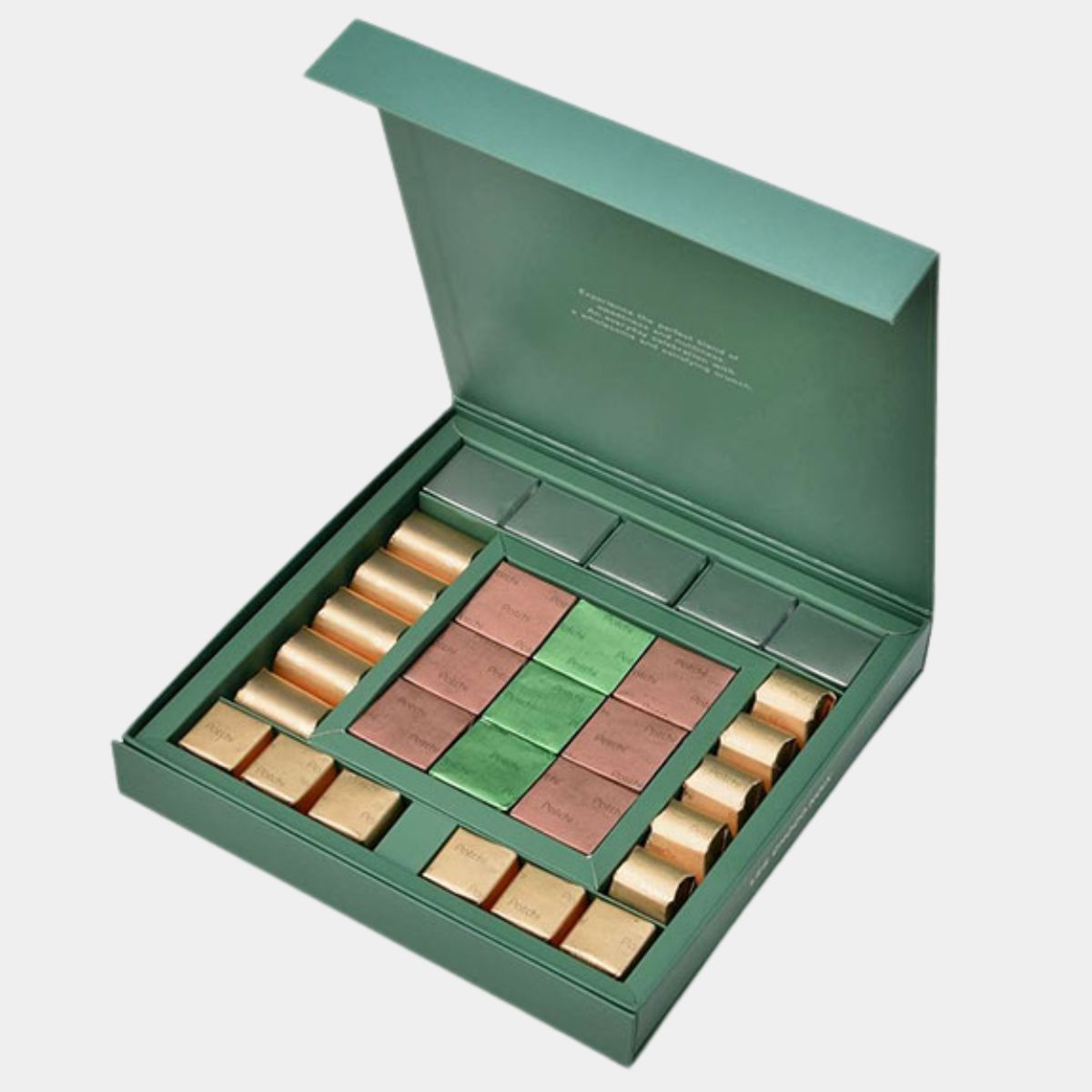 دلّل نفسك بصندوق هدايا "ليه شوكو نوا" الفاخر من باتشي، الهدية المثالية لأي مناسبة. يحتوي هذا الصندوق الفاخر على شوكولاتة غنية محشوة بمزيج رائع من اللوز والفستق والبندق وغيرها. كل قضمة تقدم مزيجًا متناغمًا من النكهات والقوام، مما يجعله هدية رائعة لأعياد الميلاد، وعيد الأم، ويوم المرأة، والذكرى السنوية، أو أي احتفال مميز.