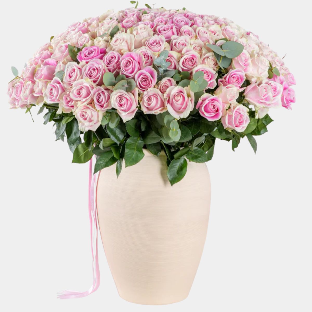 150 Luxury Pink Roses Vase
